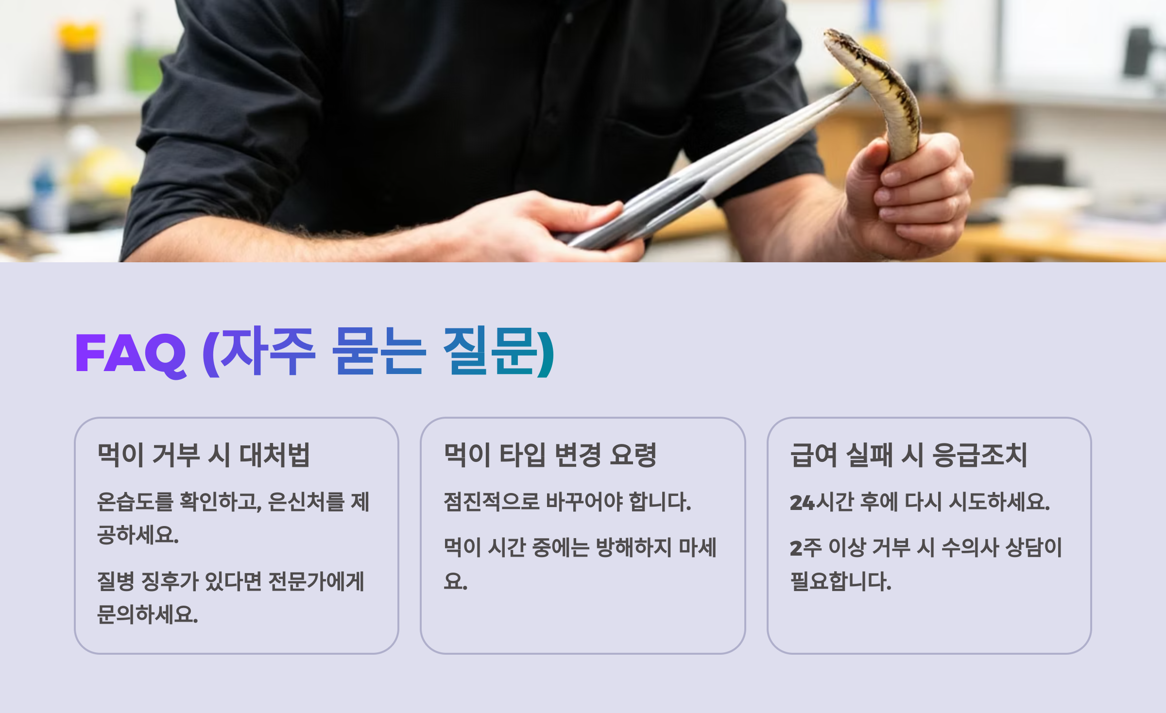 Q1. 뱀이 먹이를 거부해요. 어떻게 해야 하나요?