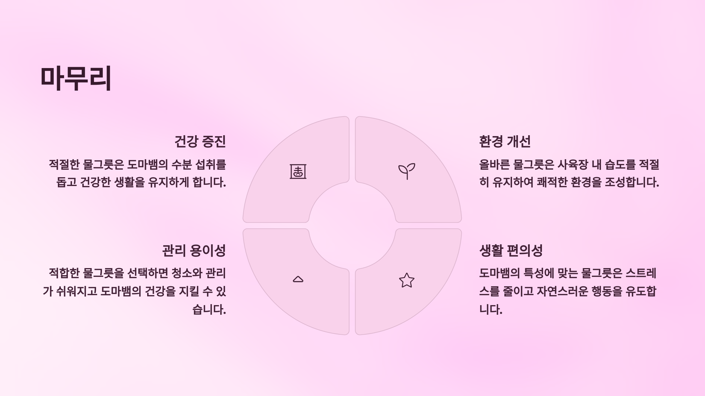 무엇보다 중요한 것은 깨끗한 물을 항상 제공하는 거예요. 아무리 좋은 물그릇이라도 관리가 소홀하면 오히려 해가 될 수 있답니다. 매일 물을 갈아주고, 정기적으로 청소하는 습관을 들이세요.