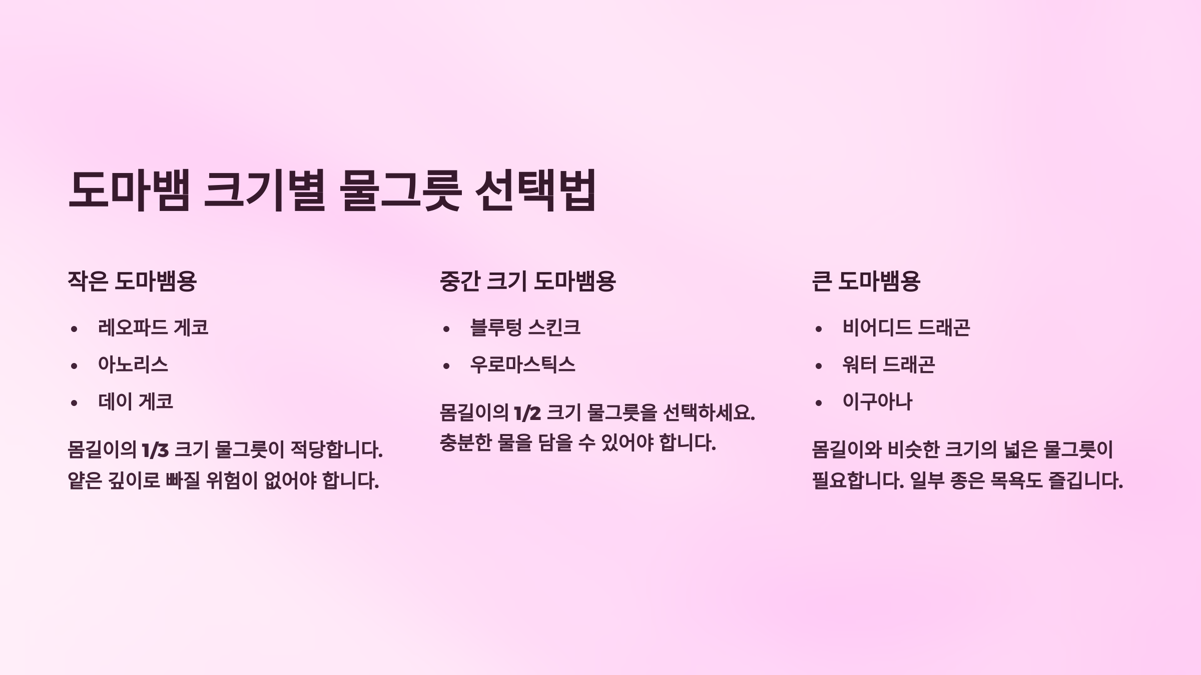 도마뱀 크기 권장 물그릇 크기 깊이 주의사항