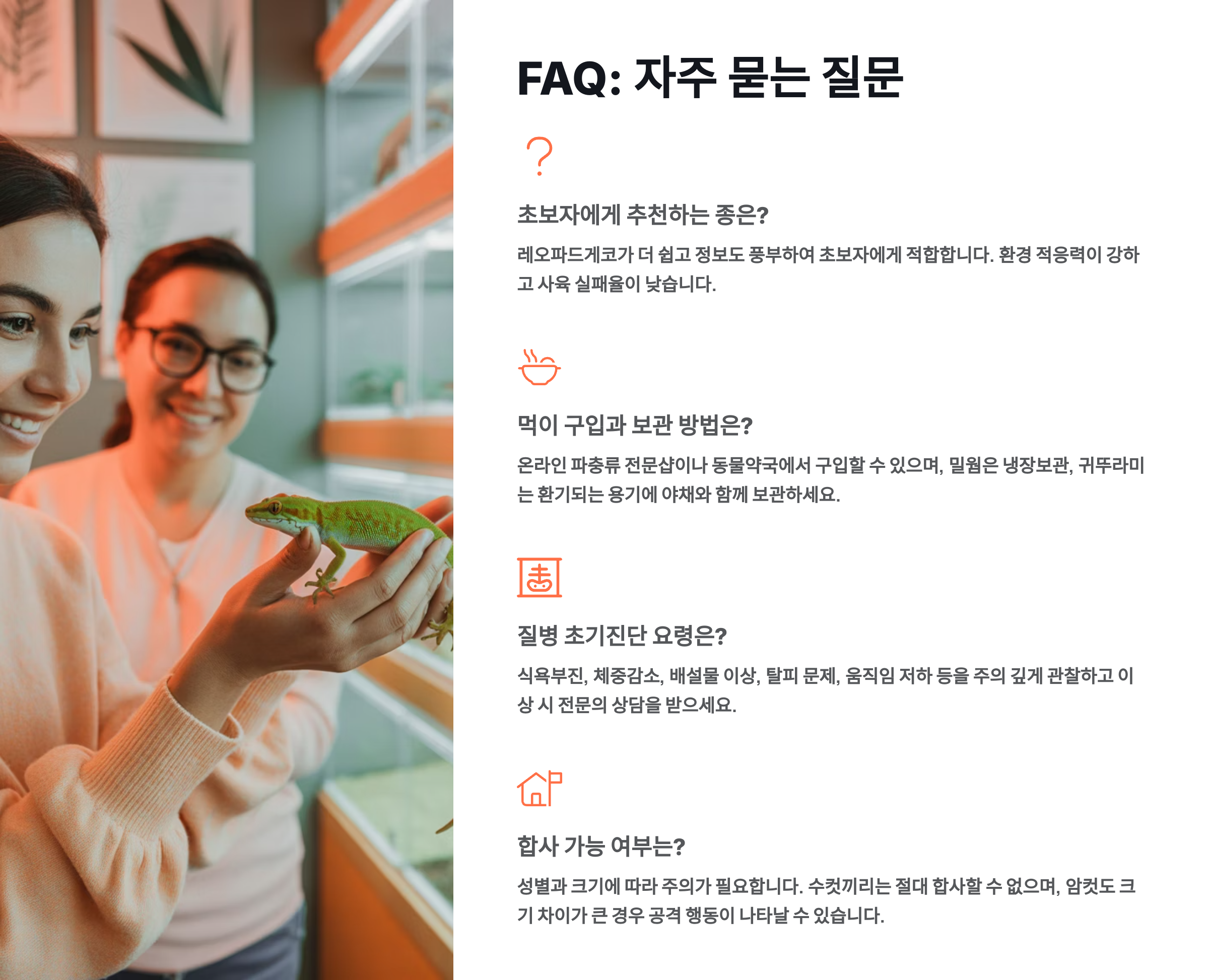 Q4. 레오파드게코와 팻테일게코를 함께 키워도 되나요?