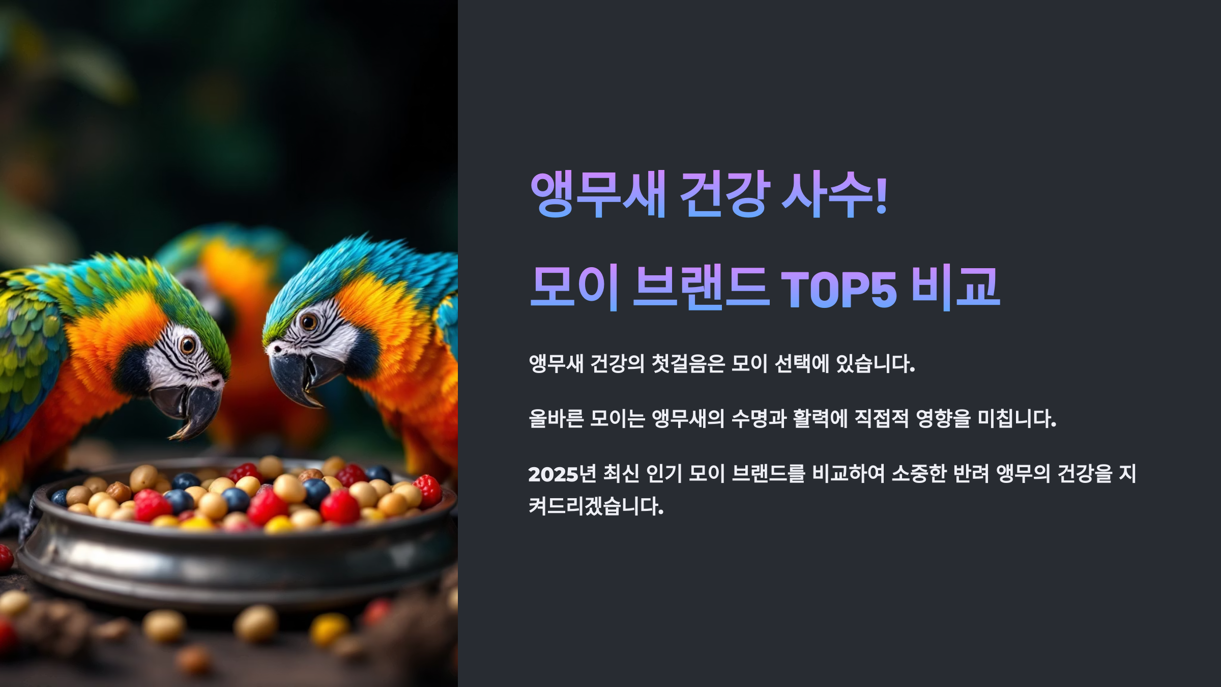2025년 현재 국내에서 인기 있는 앵무새 모이 브랜드들을 심도 있게 분석해서 TOP5 순위를 정했어요. 단순히 가격이나 인지도만 고려한 게 아니라 영양성분, 원료의 품질, 앵무새들의 기호도, 소화율, 그리고 실제 사용자들의 후기까지 종합적으로 평가했답니다. 여러분의 소중한 앵무새 친구들이 건강하고 행복하게 살 수 있도록 도움이 되는 정보를 제공해드릴게요! 🌟