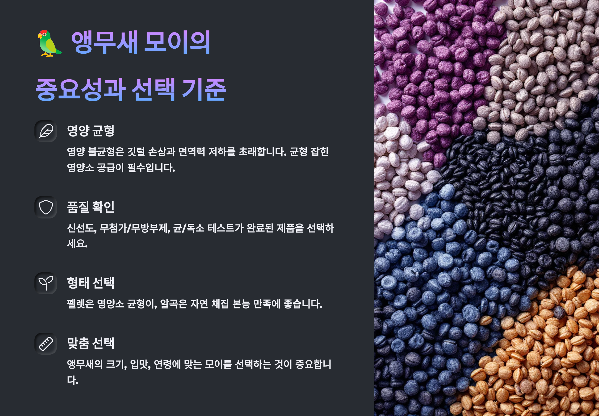🌱 앵무새 모이 선택 시 필수 체크포인트