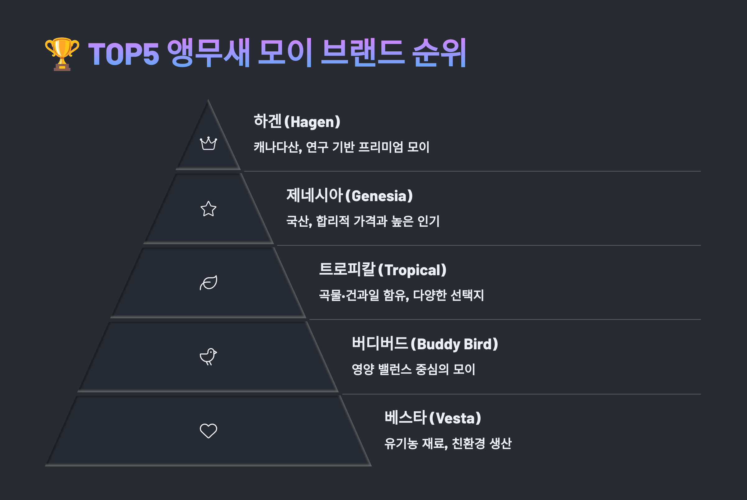 🥇 TOP5 앵무새 모이 브랜드 상세 비교