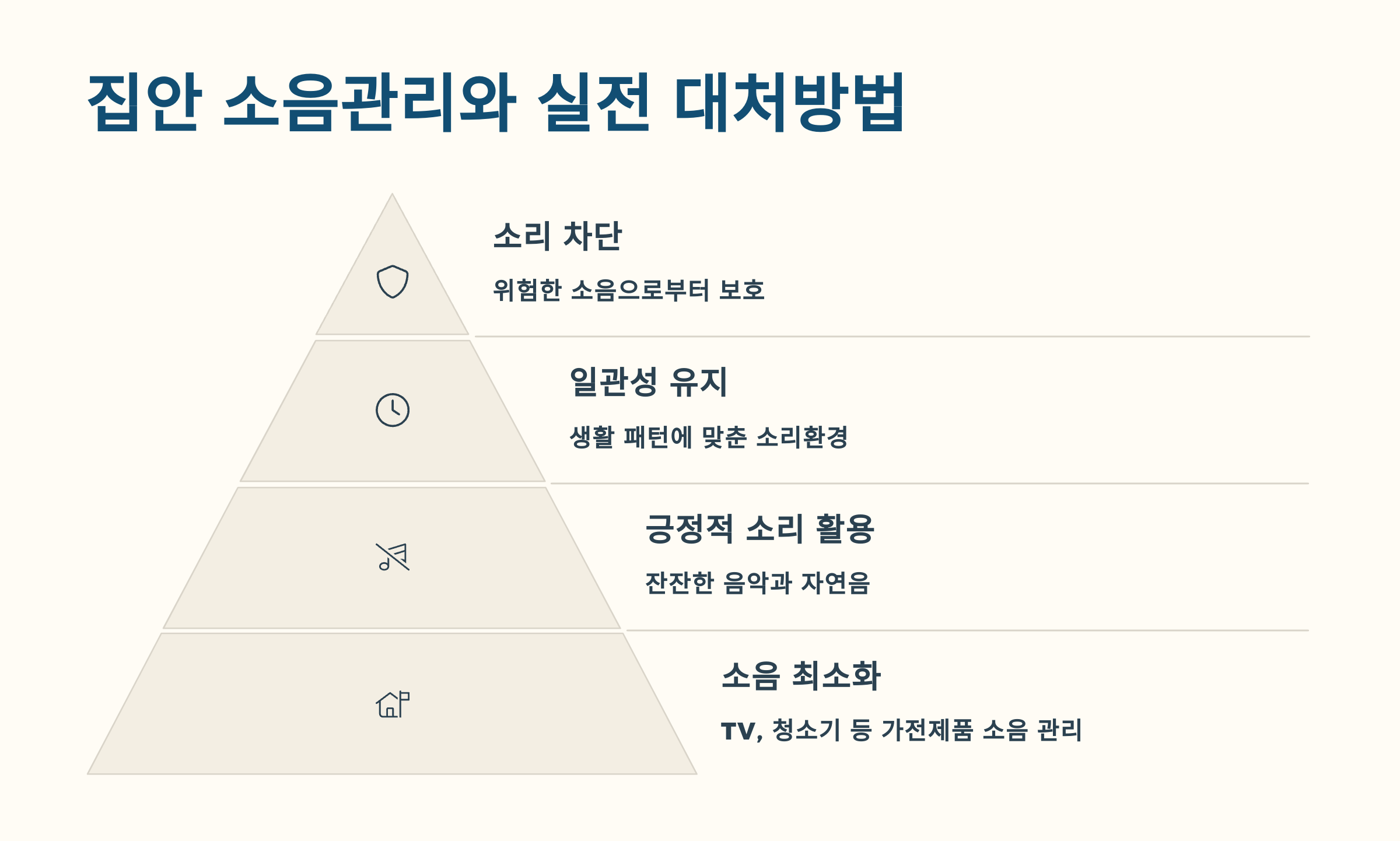 | 저녁(18-22시) | TV, 대화소리 | 볼륨 조절, 거리 확보 |