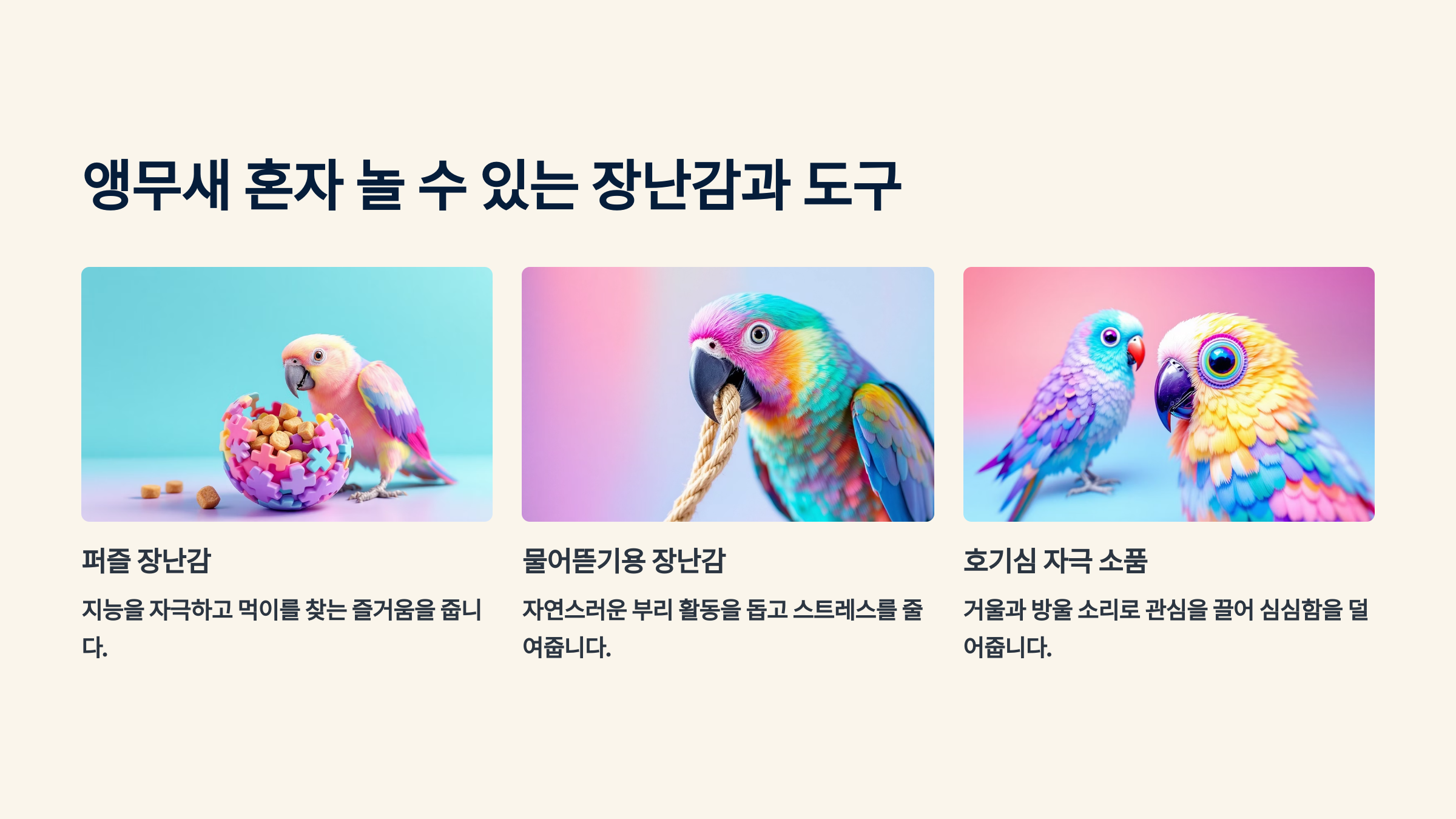 🎪 앵무새 혼자 놀 수 있는 장난감과 도구