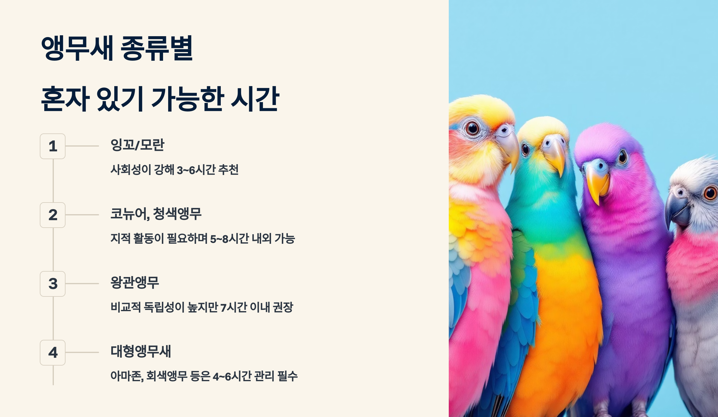 🦜 앵무새 종류별 혼자 있기 가능한 시간