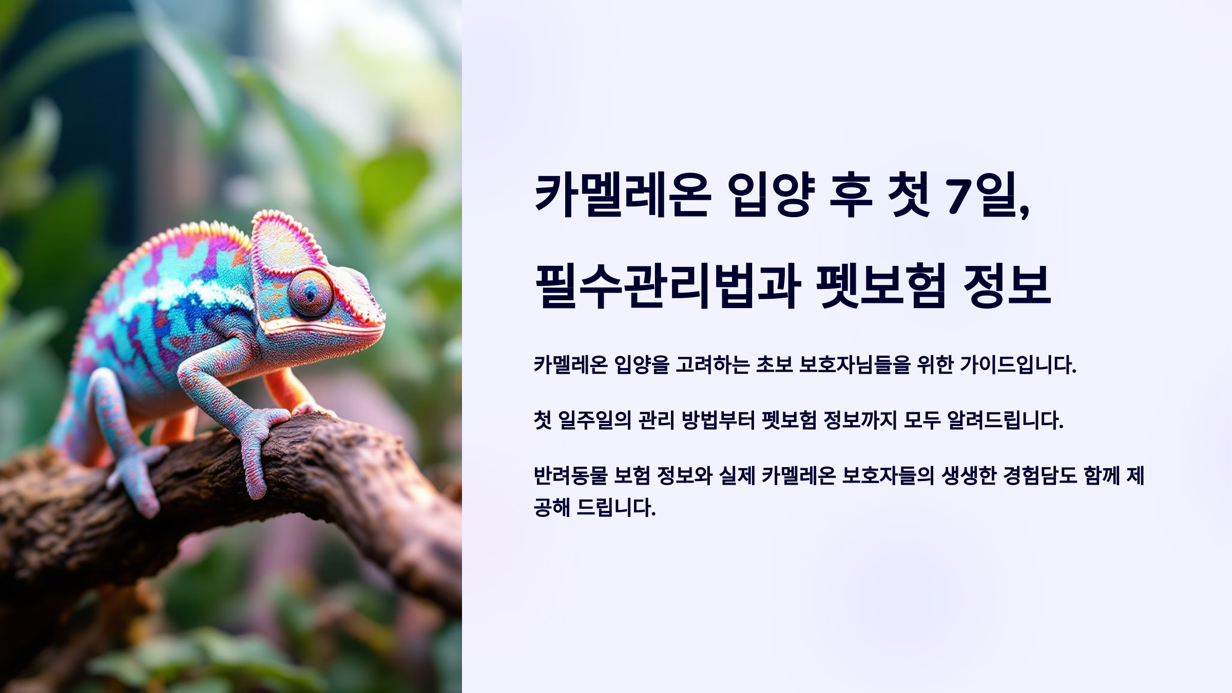 이제 첫 번째 섹션 🦎 카멜레온의 특성과 입양 시 주의점부터 시작할게요!