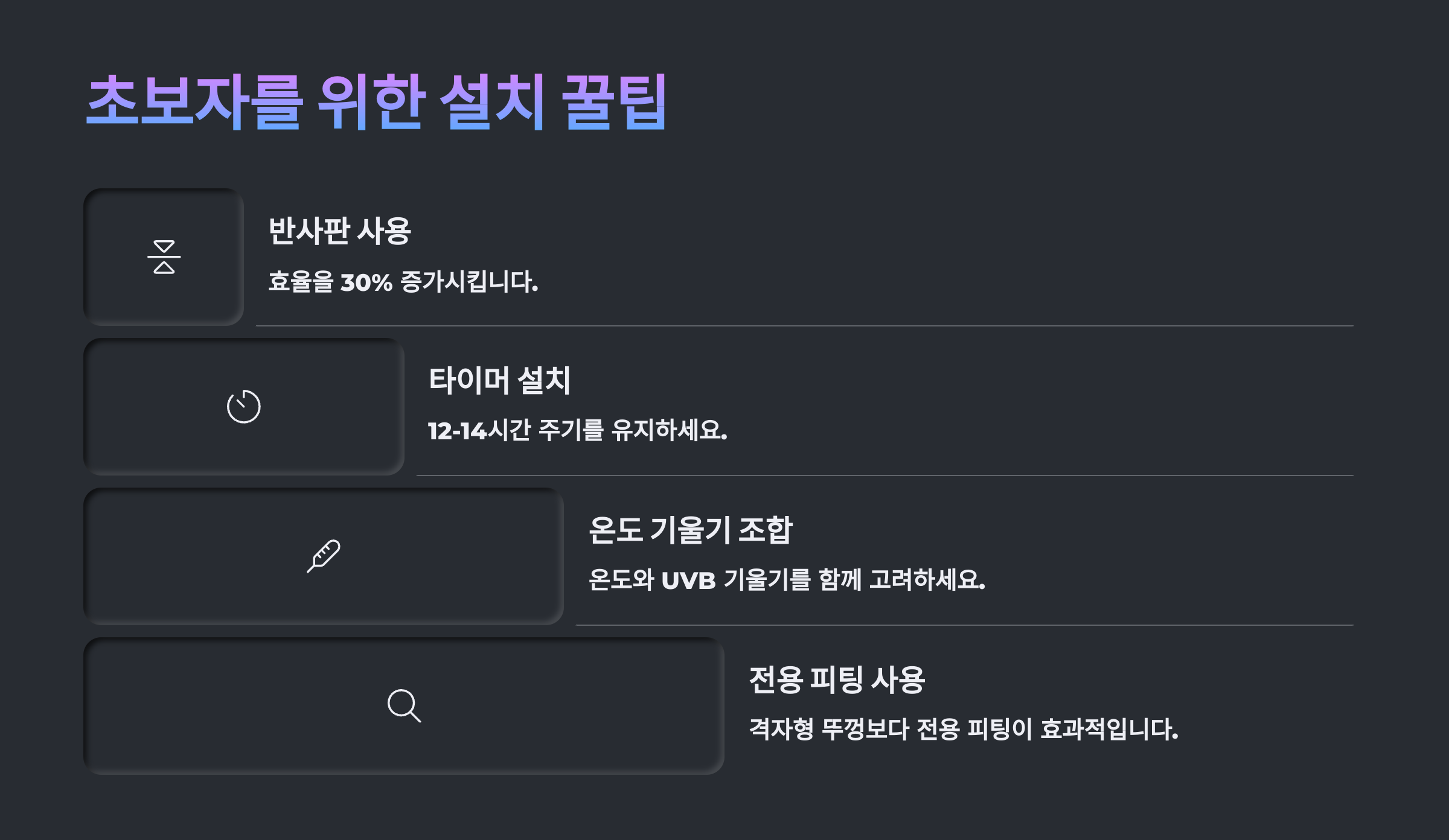 이제 다음은 📋 초보자를 위한 설치 꿀팁 섹션이에요! 처음 UVB 조명 설치하는 집사분들을 위한 실전 노하우와 제품 선택 포인트 알려드릴게요! 😊