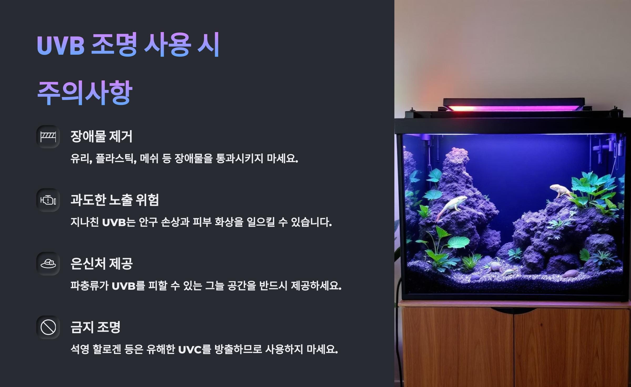 ⚠️ UVB 조명 사용 시 주의사항