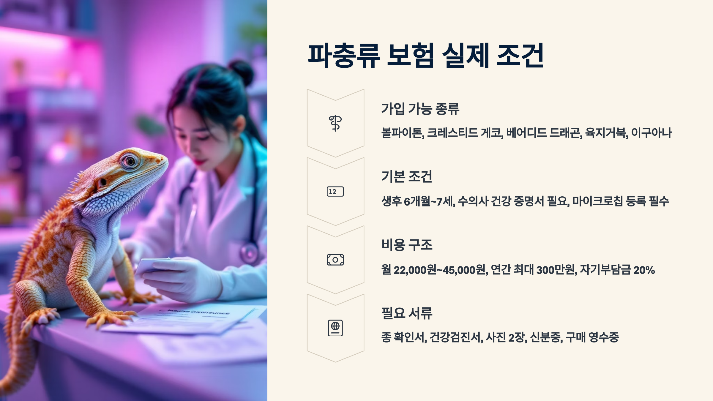 반면 내부 기생충 감염, 대사성 골질환, 비타민 결핍 같은 내과 질환은 보험사마다 기준이 달라요. 진단 장비가 제한적이고 증상이 애매한 경우가 많아 보장 제외 조건으로 분류되기 쉬워요. 🐍