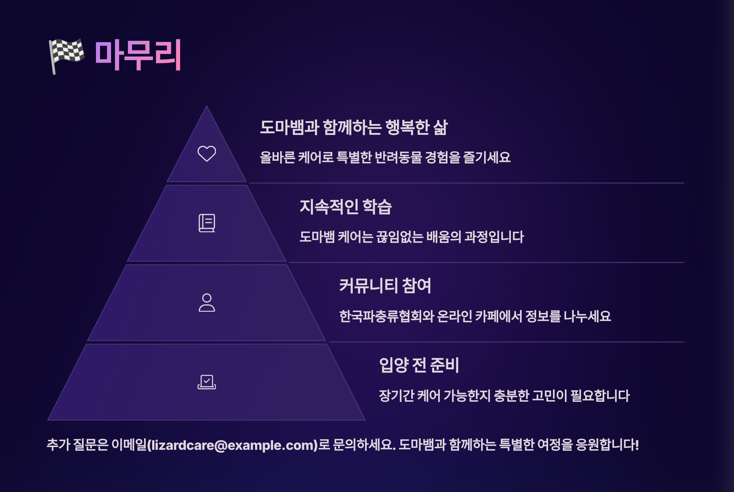 이제 마지막 🏁 마무리 섹션에서 오늘 정리한 도마뱀 사육 정보 한 번에 요약해드릴게요!