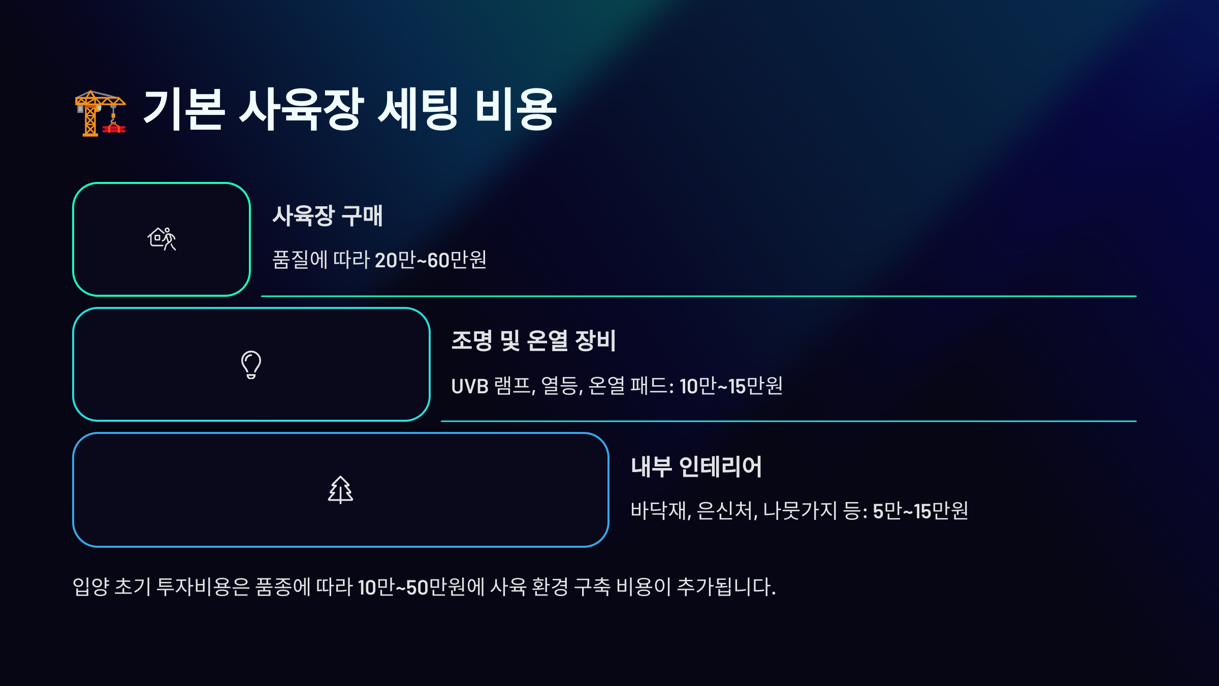 📦 사육장 세팅 주요 비용 정리
