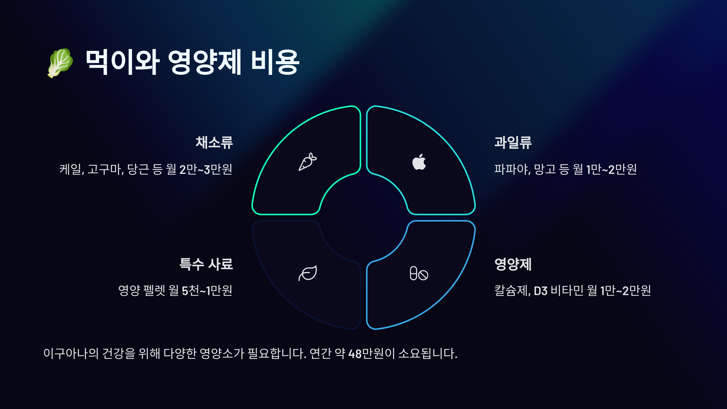 🥬 먹이와 영양제 비용