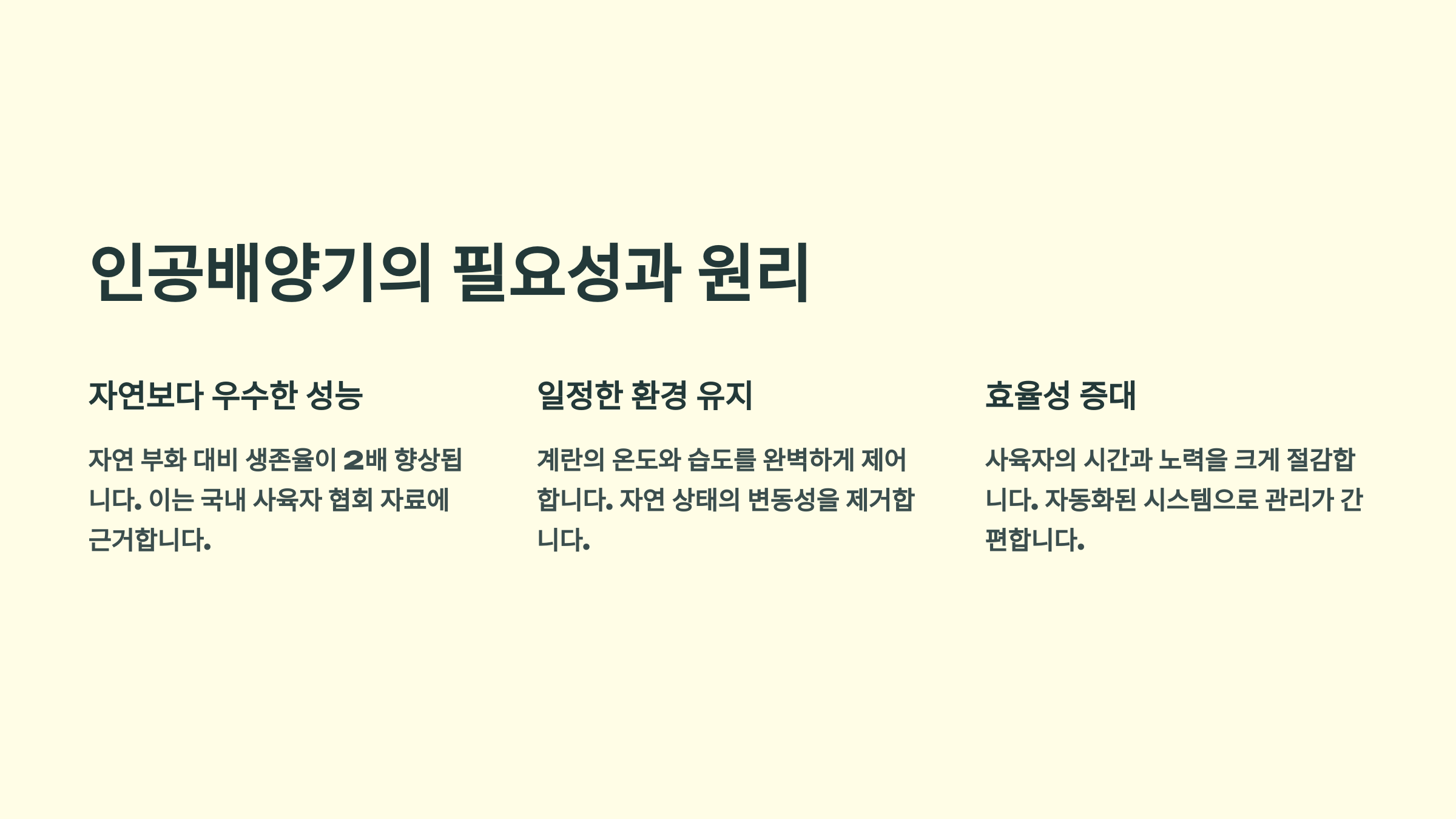 인공배양기는 단순한 기계가 아니라 작고 소중한 생명을 탄생시키는 도구예요. 사용자의 관심과 세심한 관리가 더해질 때 비로소 그 진가를 발휘하게 되죠. 🐣