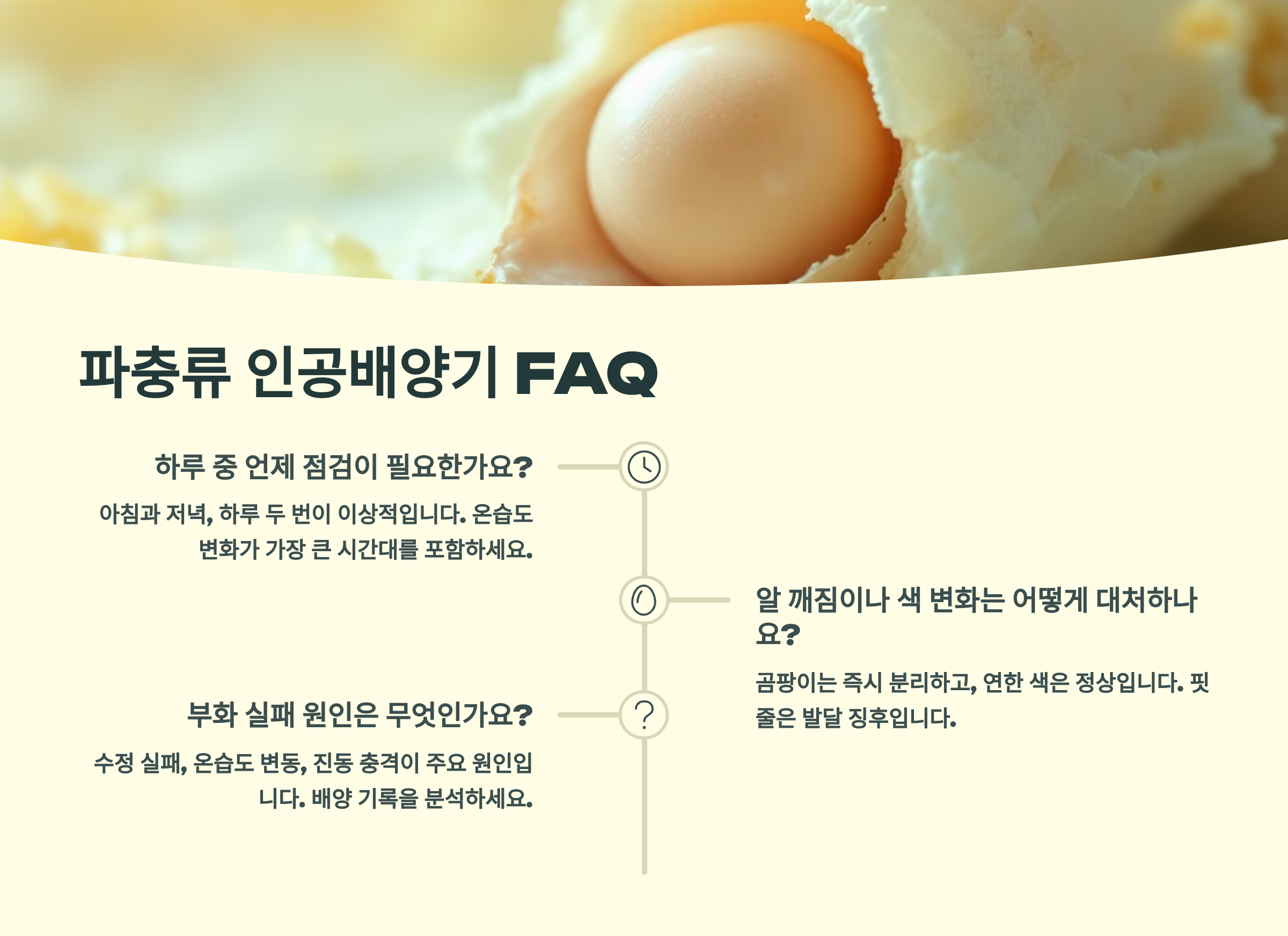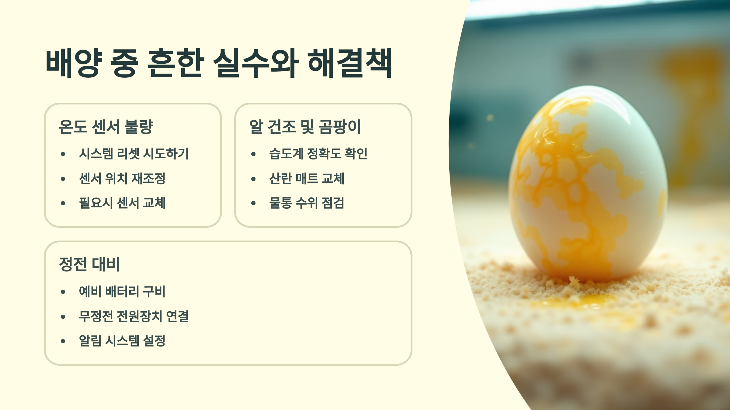 인공배양기를 사용하더라도 사소한 실수 하나가 부화 실패로 이어질 수 있어요. 그렇기 때문에 자주 발생하는 문제를 미리 알고 예방하는 것이 정말 중요해요. 😊